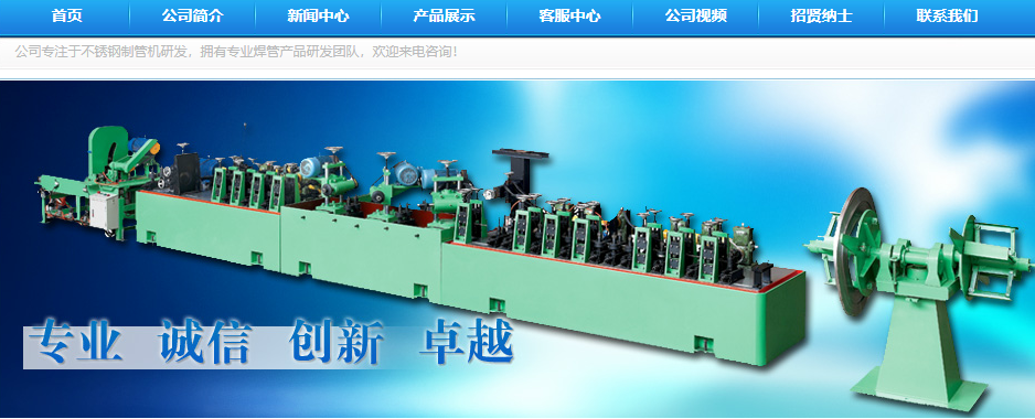 公司技術力量雄厚,整體素質強。擁有專業(yè)焊管產品研發(fā)團隊、管理團隊、30多名精干技工。公司嚴格執(zhí)行ISO9001國際質量管理體系標準要求,先進的日本精密機械加工設備,確保了高品質的產品和完善的售后服務為公司贏得了大批忠實客戶,不銹鋼焊管機設備更獲得業(yè)界及權威機構的認同。