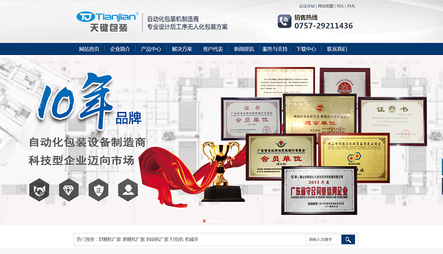 打包機網(wǎng)站建設作品賞析廣東天鍵智能包裝設備有限公司