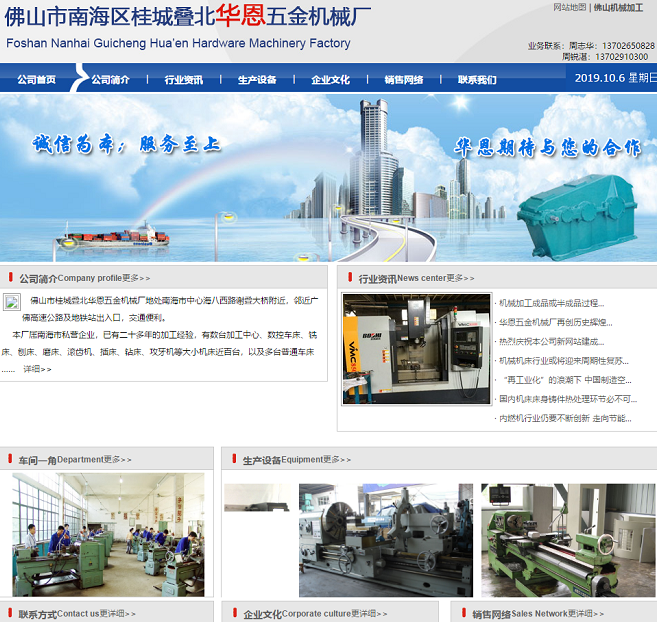銑床網頁設計作品賞析之佛山市桂城疊北華恩五金機械廠