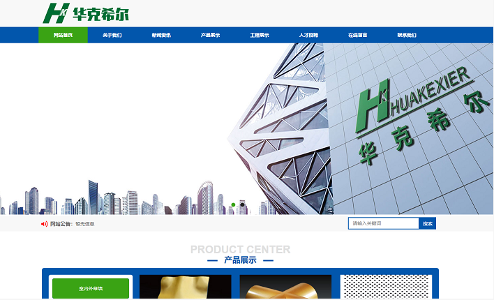 建筑墻幕網(wǎng)站設(shè)計作品賞析之佛山市華克希爾鋁業(yè)科技有限公司