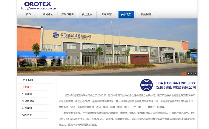 飯?zhí)?佛山)橡塑有限公司成立于2005年,是日本飯?zhí)锂a(chǎn)業(yè)株式會社在中國設(shè)立的子公司。飯?zhí)锂a(chǎn)業(yè)株式會社是全球知名NVH產(chǎn)品專業(yè)制造商,成立至今60年,是與豐田汽車等汽車廠商一同成長起來的世界級汽車零部件公司,現(xiàn)與全球主要汽車廠商均有合作,包括奔馳、寶馬、戴姆勒克萊斯勒、通用、福特、薩博、雷諾、豐田、日產(chǎn)、本田、三井物產(chǎn)、電裝等。