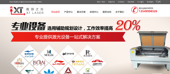 激光設(shè)備網(wǎng)站建設(shè)案例分享:佛山市金色鑫田自動化科技有限公司
