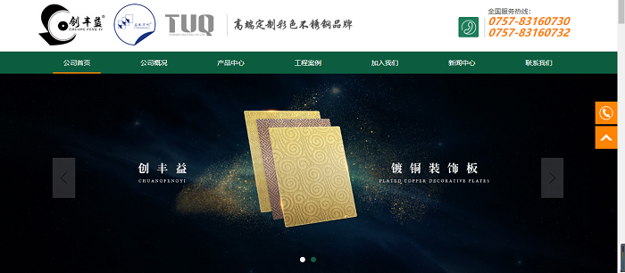 鍍銅裝飾板網(wǎng)站建設(shè)作品分享:佛山市創(chuàng)豐益金屬有限公司