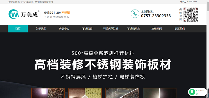 佛山市萬(wàn)美精成不銹鋼有限公司座落于中國(guó)著名的不銹鋼生產(chǎn)基地——廣東省佛山市。成立以來(lái)一直致力于“成為全球最優(yōu)質(zhì) 不銹鋼供應(yīng)商”,在產(chǎn)品品質(zhì)管理、營(yíng)銷服務(wù)體系建設(shè)等方面不懈追求完美,誠(chéng)信經(jīng)營(yíng),現(xiàn)已發(fā)展成在國(guó)內(nèi)外具有重要影響力的大型不銹鋼企業(yè)。