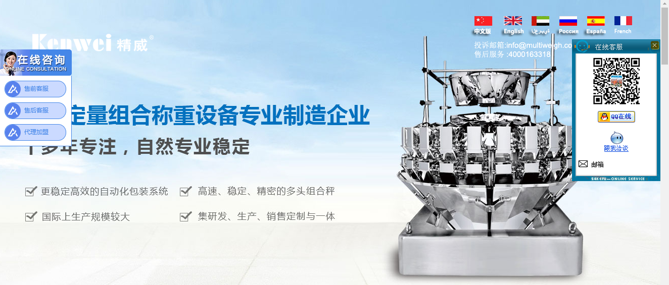 廣東精威智能機(jī)器有限公司是目前國(guó)際上生產(chǎn)規(guī)模大、影響力廣的多頭組合秤制造企業(yè),作為全球化的定量組合稱(chēng)重設(shè)備制造企業(yè),公司致力于高速、穩(wěn)定、精密的多頭組合秤、多頭線(xiàn)性秤、重量選別秤、金屬檢測(cè)機(jī)、物料輸送等產(chǎn)品的研發(fā)與制造,并為客戶(hù)提供與定制滿(mǎn)足各種需求的自動(dòng)定量稱(chēng)重包裝系。