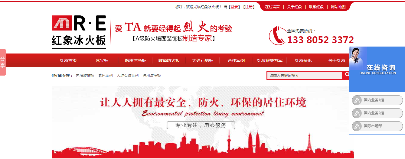 “紅象-冰火板”基材采用100%無石棉纖維水泥板,達(dá)到歐洲E0級(jí)環(huán)保標(biāo)準(zhǔn),產(chǎn)品特性:A級(jí)防火、防水、防霉變、防白蟻、抗菌、抗靜電、耐腐蝕、耐溫變、耐色變、輕質(zhì)、易加工、易清理保養(yǎng)、施工便捷等優(yōu)點(diǎn),是一種綠色、低碳、節(jié)能、環(huán)保的新型飾面板材,主要應(yīng)用于室內(nèi)外墻面裝飾,如:商場、賓館、酒店、辦公樓、醫(yī)院、學(xué)校、城市綜合體、別墅、家裝、城市隧道、地鐵、人防市政工程等。