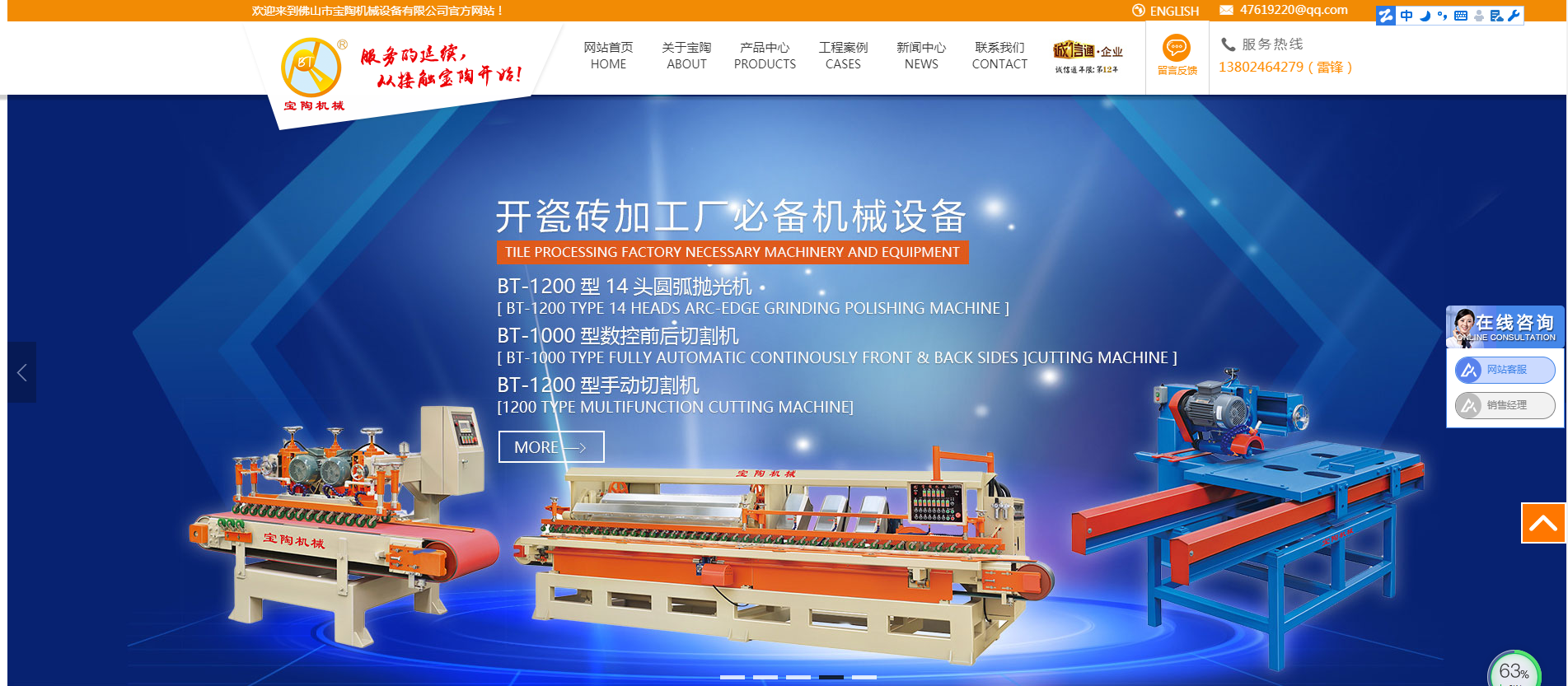 瓷磚切割機(jī)網(wǎng)站建設(shè)哪家好:佛山市寶陶機(jī)械設(shè)備有限公司是制造各類:陶瓷、石材、巖板、陶瓷大板深加工機(jī)械設(shè)備的知名廠家,現(xiàn)為佛山機(jī)械行業(yè)協(xié)會(huì)誠信會(huì)員。始建于2005年,經(jīng)過16年的專研與發(fā)展現(xiàn)擁有多名資深的專業(yè)技術(shù)人員及高級(jí)工程師,完善的配套管理和優(yōu)質(zhì)的售后服務(wù).產(chǎn)品質(zhì)量過硬、售后服務(wù)完善,品種系列規(guī)格齊全。主要產(chǎn)品有:圓弧機(jī)拋光機(jī)、石材線條機(jī)拋光機(jī)、多功能拋光機(jī)、平面拋光機(jī)、智能水刀、磨邊機(jī)、帶數(shù)控自動(dòng)切割機(jī)、全自動(dòng)干切線等各種陶瓷深加工設(shè)備。產(chǎn)品遍及全國各省、市、區(qū)、并遠(yuǎn)銷歐美、東南亞等多個(gè)國家和地區(qū)。