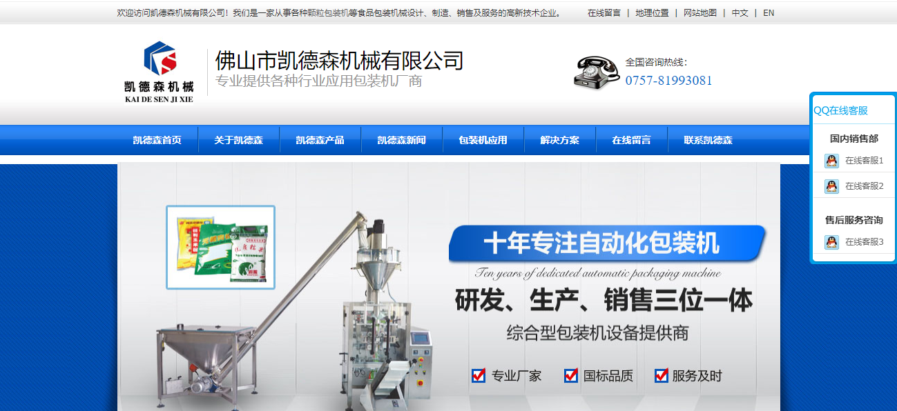 今天讓我們一起來分享一下食品包裝機械網站推廣作品: 佛山市凱德森機械有限公司
