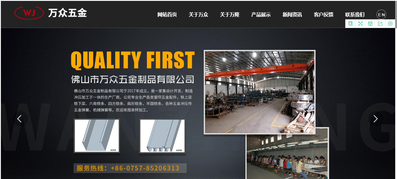 今天讓我們一起來分享一下窗簾五金配件網(wǎng)頁設(shè)計(jì)作品: 佛山市萬眾五金制品有限公司于2017年成立,是一家集設(shè)計(jì)開發(fā)、制造、沖壓加工于一體的生產(chǎn)廠商。