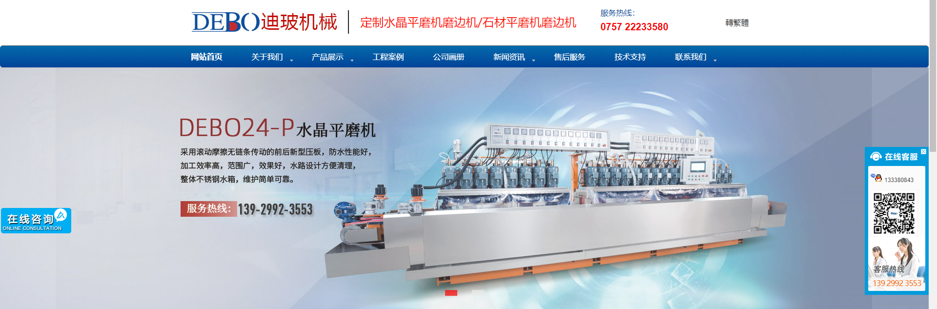 今天讓我們一起來(lái)分享一下玻璃直線磨邊機(jī)網(wǎng)站推廣案例:佛山市迪玻機(jī)械制造有限公司是一家專業(yè)生產(chǎn)玻璃、石材磨邊冷加工機(jī)械的生產(chǎn)廠家,集研發(fā)、制造、銷售為一體。主營(yíng)產(chǎn)品包括:玻璃直線磨邊機(jī)、玻璃直線斜邊機(jī),玻璃雙邊磨邊機(jī),玻璃鉆孔機(jī)、玻璃清洗機(jī)、玻璃自動(dòng)噴砂機(jī)、玻璃上片臺(tái)等,石材磨邊,切割,造型一體機(jī)等,玻璃機(jī)械已廣泛應(yīng)用于家電、衛(wèi)浴、汽車、建筑、太陽(yáng)能等行業(yè)。石材機(jī)械已廣泛應(yīng)用于石材加工行業(yè)。