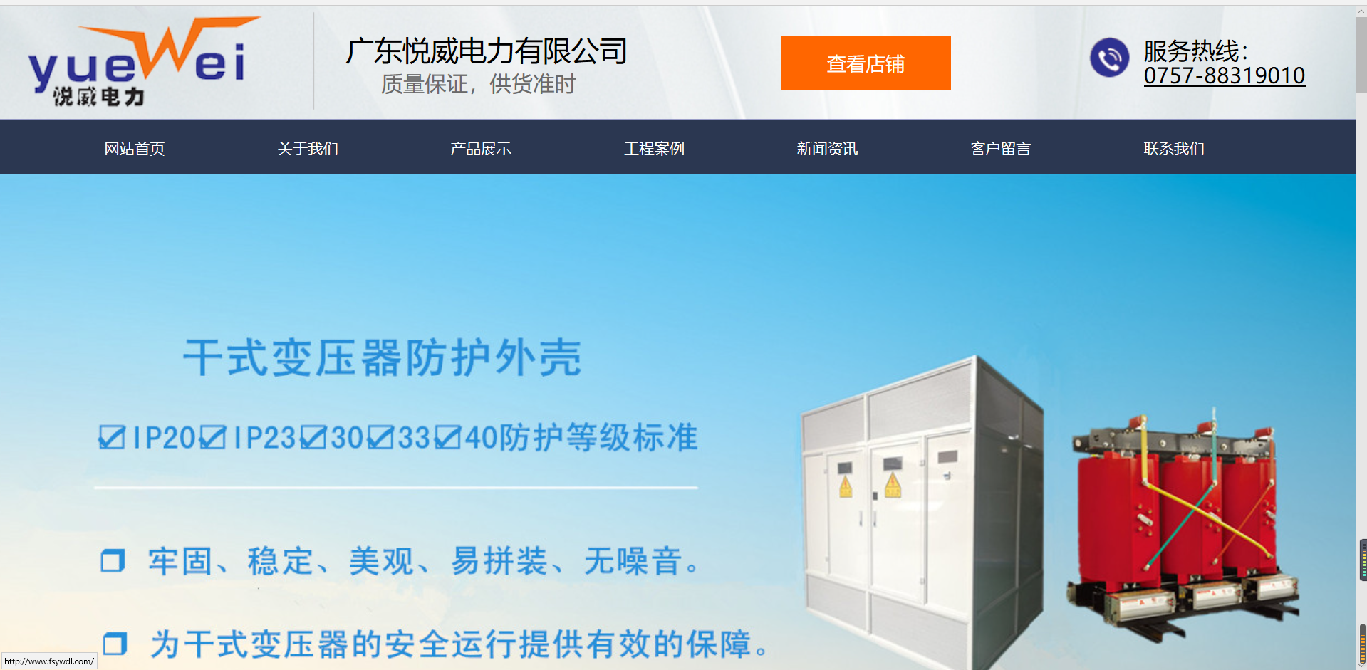 今天讓我們一起來分享一下變壓器網(wǎng)站推廣案例:廣東悅威電力有限公司位于廣東省佛山市南海區(qū)羅村聯(lián)和工業(yè)區(qū)。主營產(chǎn)品有干式變壓器防護(hù)外殼、鋁合金外殼、不銹鋼外殼、冷軋鋼板外殼、歐式廂變外殼、冷卻風(fēng)機(jī)、溫控器、澆注線圈模具等。