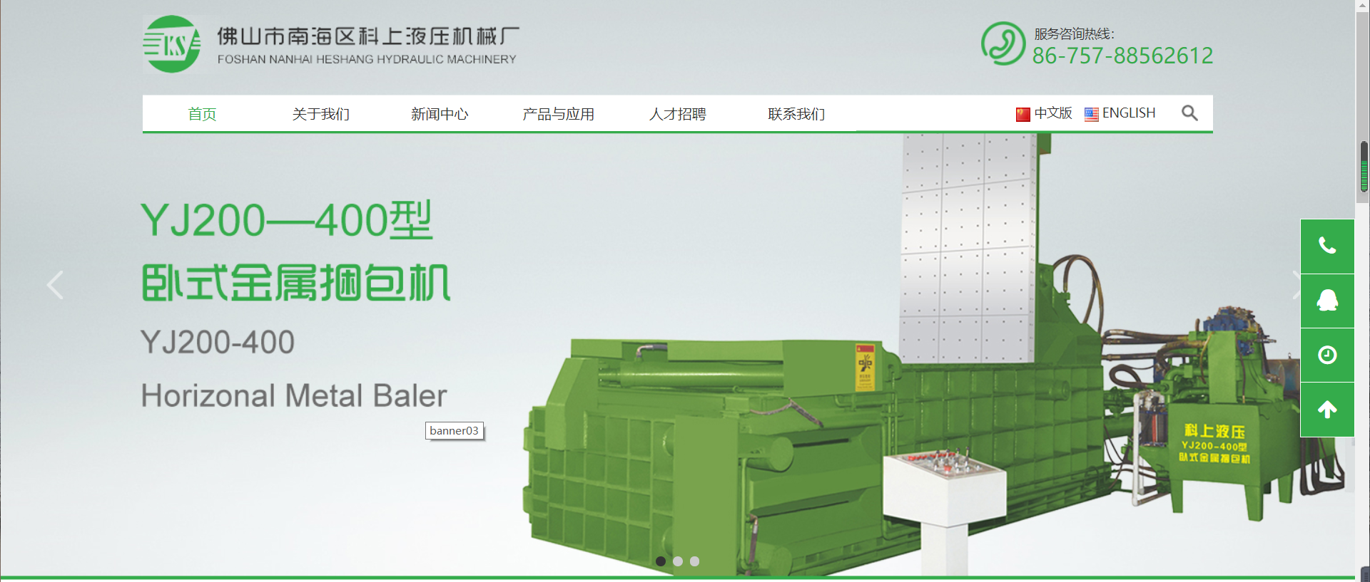 今天讓我們一起來分享一下金屬打包機(jī)網(wǎng)站設(shè)計(jì)作品:佛山市南海區(qū)科上液壓機(jī)械廠創(chuàng)建于1989年,是一家專業(yè)設(shè)計(jì)、制造液壓設(shè)備的企業(yè),已有20多年的開發(fā)設(shè)計(jì)與生產(chǎn)制造的豐富經(jīng)驗(yàn)。多年來我們不斷引進(jìn)國內(nèi)外先進(jìn)技術(shù),使我們的技術(shù)精益求精,產(chǎn)品質(zhì)量更是不斷提高,暢銷全國各地,遠(yuǎn)銷東南亞。