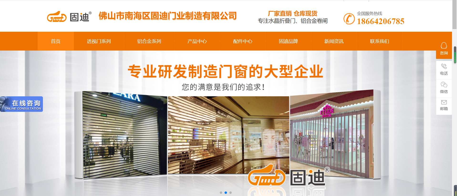 今天讓我們一起來分享一下工業(yè)門網(wǎng)站建設(shè)作品:佛山市南海區(qū)固迪門業(yè)制造有限公司地處佛山市南海區(qū)平洲鎮(zhèn),緊臨廣州南環(huán)海南出口,廣珠西線平洲出口,至佛山一環(huán)不到10分鐘車程,交通便利快捷。工場占地面積約5000平方米,是一家集門窗及遮陽產(chǎn)品研發(fā)、制造、批發(fā)、零售、工程安裝及售后服務(wù)于一體的大型專業(yè)化門窗企業(yè)。