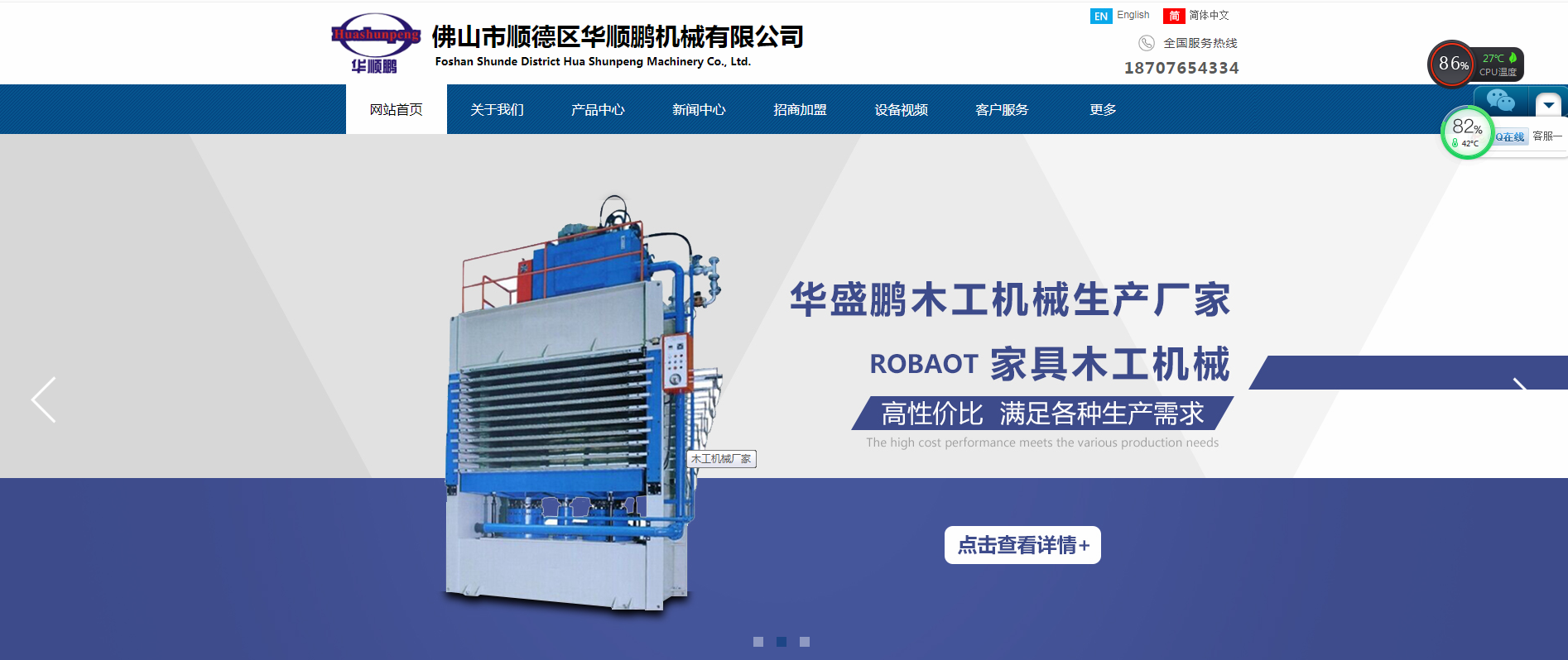 今日分享熱壓機(jī)網(wǎng)站案例分享:華順鵬機(jī)械制造有限公司地處于素有木工機(jī)械之鄉(xiāng)的廣東順德倫教鎮(zhèn),是一家大型高品質(zhì)的專業(yè)木工機(jī)械生產(chǎn)企業(yè),擁有一支以專業(yè)工程師,技師為主體的技術(shù)隊(duì)伍。具有整廠規(guī)劃,設(shè)計(jì)、開發(fā)、制造標(biāo)準(zhǔn)系列產(chǎn)品和非標(biāo)設(shè)備的能力。