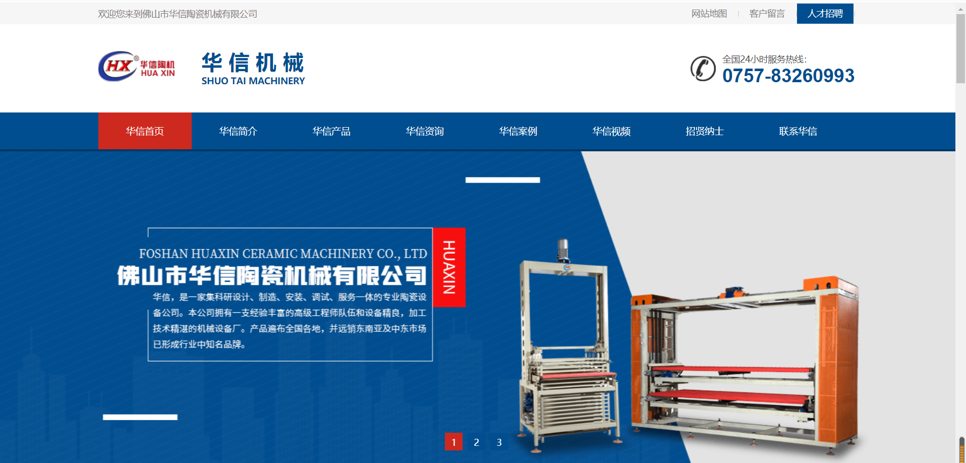 今天讓我們一起來分享一下陶瓷機械網站建設案例: 佛山市華信陶瓷機械有限公司位于南國陶都——佛山,是一家集科研設計、制造、安裝、調試、服務一體的專業(yè)陶瓷設備公司。本公司擁有一支經驗豐富的高級工程師隊伍和設備精良,加工技術精湛的機械設備廠。經過多年的快速發(fā)展,我公司開發(fā)的輥道窯,多層干燥窯,進出窯平臺,多功能施釉線及各種窯爐配套設備。產品遍布全國各地,并遠銷東南亞及中東市場,已形成行業(yè)中知名品牌。
