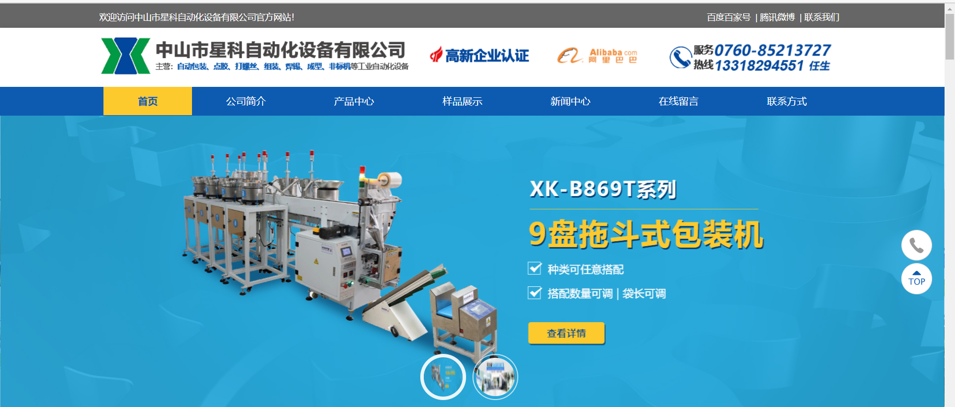 今天讓我我們一起來分享一下包裝機網(wǎng)站推廣作品: 中山市星科自動化屹立于國家高新技術(shù)產(chǎn)業(yè)區(qū)------火炬開發(fā)區(qū),位于珠三角洲西南部,毗鄰佛山、珠海、東莞、深圳、廣州。廣珠澳高速、輕軌橫貫全境,交通便利。
