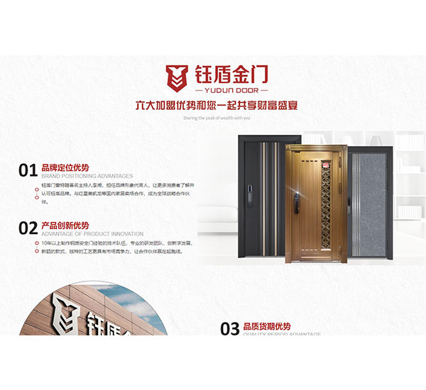 不銹鋼門網(wǎng)站建設(shè)案例分享:廣州市鈺盾門業(yè)有限公司總部位于美麗的中國(guó)廣州,是一家集研發(fā)、生產(chǎn)、銷售于一體的不銹鋼安全門,銅門、銅藝的生產(chǎn)企業(yè),公司現(xiàn)擁有兩萬(wàn)多平方米的生產(chǎn)基地,各種專業(yè)人才100多人,總職工達(dá)300多人。作為中國(guó)不銹鋼安全門的研發(fā)和制造者,公司在國(guó)內(nèi)率先研發(fā),生產(chǎn)智能安全門產(chǎn)品系統(tǒng),采用國(guó)際標(biāo)準(zhǔn)的先進(jìn)技術(shù),獲得多項(xiàng)專利。產(chǎn)品通過(guò)權(quán)威部門測(cè),符合國(guó)家門窗產(chǎn)品的質(zhì)量要求。公司始終堅(jiān)持以“質(zhì)量求生存,創(chuàng)新求發(fā)展”的經(jīng)營(yíng)理念,組建了一支具有行業(yè)領(lǐng)先水平的研發(fā)團(tuán)隊(duì),擁有自主研發(fā)的核心技術(shù)和知識(shí)產(chǎn)權(quán),產(chǎn)品工藝精良,主要針對(duì)市場(chǎng)高端客戶,可以為客戶“量身定制”個(gè)性化產(chǎn)品,公司也始終堅(jiān)持“能者上,庸者讓”的用人原則,培養(yǎng)了一批管理、營(yíng)銷的高端人才,各項(xiàng)管理在同行處于領(lǐng)先水平,公司將繼續(xù)為客戶的需求持續(xù)新,與合作伙伴開放合作。致力于為客戶提供系統(tǒng)的定制產(chǎn)品和服務(wù),為客戶創(chuàng)造最大價(jià)值。