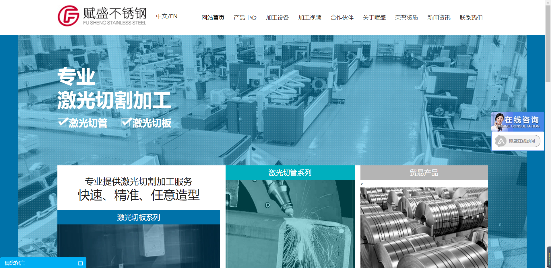 激光切板網(wǎng)站設(shè)計哪家好呢?今天讓我們一起來分享一下激光切板網(wǎng)站設(shè)計案例:佛山市賦盛不銹鋼貿(mào)易有限公司