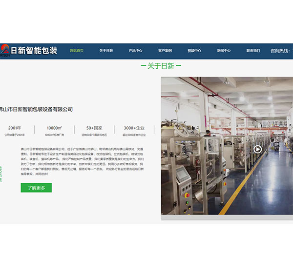 給袋式包裝機(jī)網(wǎng)站建設(shè)案例分享:佛山市日新智能包裝設(shè)備有限公司,位于廣東省佛山市獅山,毗鄰佛山機(jī)場(chǎng)與佛山高鐵站,交通便利。日新智能專注于設(shè)計(jì)生產(chǎn)制造各類自動(dòng)化包裝設(shè)備,枕式包裝機(jī),立式包裝機(jī),給袋式包裝機(jī),裝盒機(jī),灌裝機(jī)等產(chǎn)品。 我們嚴(yán)格控制產(chǎn)品質(zhì)量,我們秉承質(zhì)量就是我們的生命力。我們致力于創(chuàng)新,我們相信創(chuàng)新才是我們的未來,創(chuàng)新帶我們走的更遠(yuǎn)。我用心去做好售后服務(wù),我們的每一個(gè)客戶都是我們朋友,售后無止境,服務(wù)好每一個(gè)朋友。 歡迎各行各業(yè)的朋友蒞臨日新指導(dǎo)參觀,共同進(jìn)步!