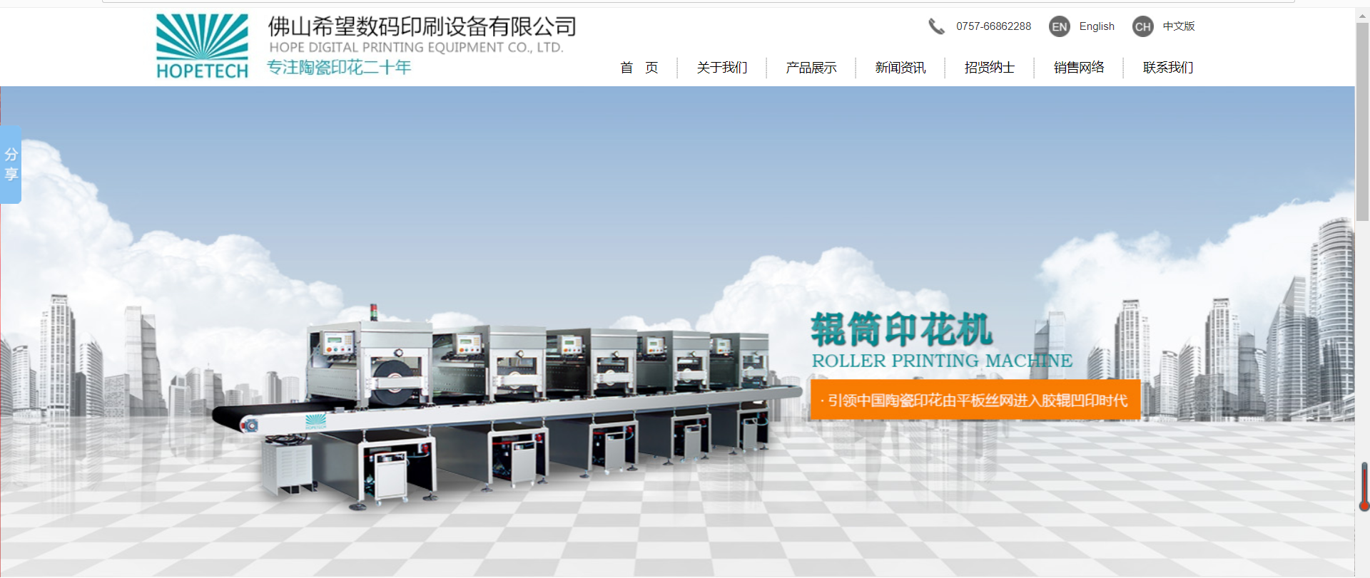 佛山希望數(shù)碼印刷設(shè)備有限公司是一家集研發(fā)、生產(chǎn)、銷售與服務(wù)為一體的高新技術(shù)企業(yè)。自1996年進(jìn)入陶瓷行業(yè),希望公司從電子產(chǎn)品軟硬件的研發(fā)起步,經(jīng)過十幾年的不懈努力及發(fā)展,現(xiàn)已成為國(guó)內(nèi)科技含量高、門類齊全、規(guī)格全面的印花和施釉設(shè)備專業(yè)制造企業(yè)。從國(guó)產(chǎn)第一臺(tái)皮帶式平板印花機(jī),精確套版印花機(jī)到中國(guó)首家研發(fā)的硅膠輥筒印花機(jī),再到第一臺(tái)顛覆傳統(tǒng)陶瓷印刷格局的國(guó)產(chǎn)數(shù)碼噴墨機(jī),希望公司以值得信賴的品質(zhì)和真誠(chéng)的服務(wù),成功奠定了其在行業(yè)內(nèi)的領(lǐng)軍地位。