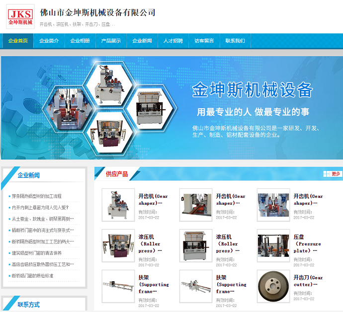 鋁材設(shè)備網(wǎng)站制作作品賞析之佛山市南海區(qū)金坤斯機(jī)械設(shè)備有限公司