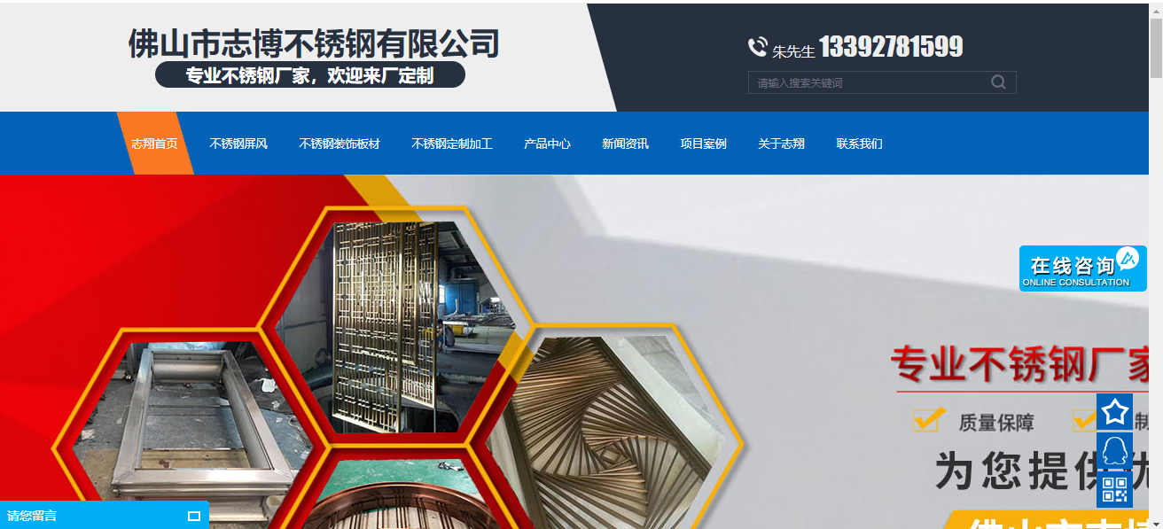 讓我們一起來分享一下不銹鋼屏風(fēng)網(wǎng)站設(shè)計案例:佛山市志博不銹鋼有限公司