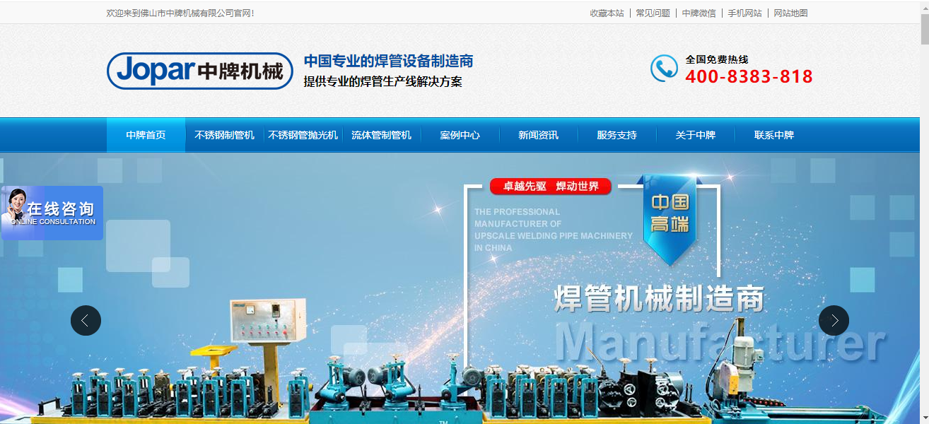 今天讓我們一起來分享一下制管機設備網(wǎng)站建設作品: 佛山市中牌機械有限公司