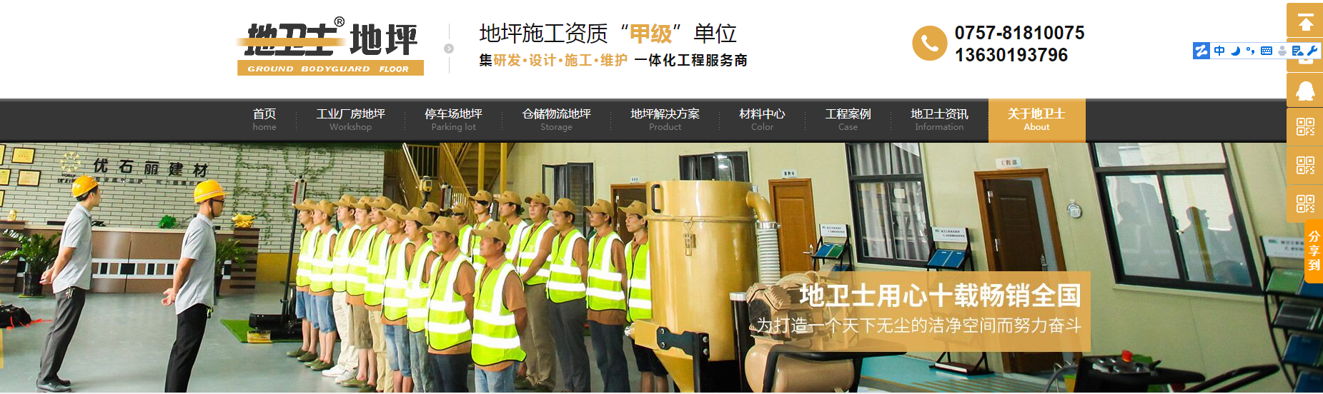 地衛(wèi)士地坪作為佛山優(yōu)石麗建筑材料有限公司旗下品牌,目前已經(jīng)擁有五大地坪體系即:工業(yè)廠房地坪體系、停車場車庫地坪體系、倉儲物流地坪體系、商業(yè)市政藝術(shù)地坪體系、運動場康體地坪體系。所生產(chǎn)制造的各類產(chǎn)品通過國家相關(guān)部門的各項認(rèn)證,各項技術(shù)指標(biāo)均符合國家標(biāo)準(zhǔn)的要求。