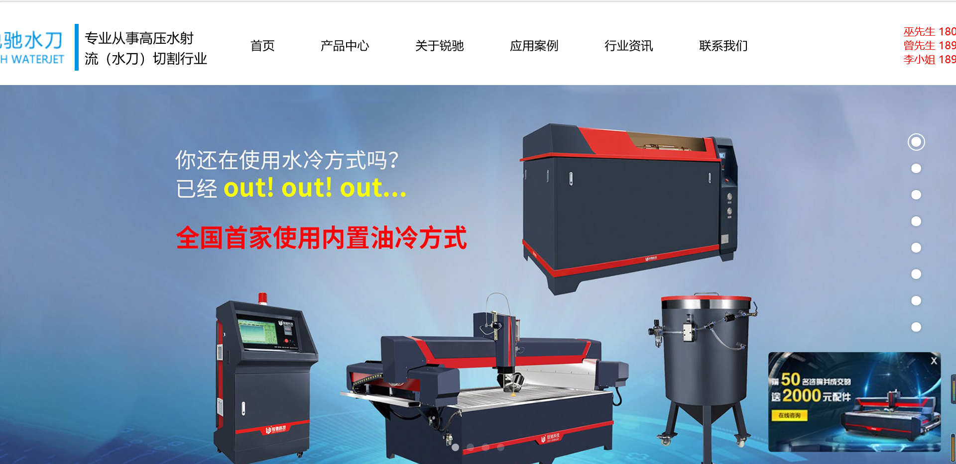 今天讓我們一起來分享一下水刀網(wǎng)站推廣作品: 銳馳水刀一直致力于水射流切割技術(shù)及設(shè)備配件的開發(fā)與生產(chǎn),專業(yè)為客戶提供最具優(yōu)勢的產(chǎn)品與服務(wù)。公司產(chǎn)品不僅在國內(nèi)銷售領(lǐng)先,且遠(yuǎn)銷印尼、加拿大、南美、中東、東南亞等國家和地區(qū),其中包括眾多國內(nèi)外知名水射流設(shè)備商、各地區(qū)設(shè)備服務(wù)商、貿(mào)易商、以及大型加工企業(yè)、加工廠等。其獨(dú)特、專業(yè)的技術(shù)和精細(xì)加工的優(yōu)良品質(zhì)隨著新型制造業(yè)的需求和新材料應(yīng)用領(lǐng)域的飛速拓展,已為愈來愈多的行業(yè)所采用。每一款銳馳生產(chǎn)出售的產(chǎn)品都經(jīng)過一系列專業(yè)的質(zhì)量檢測工序,我們堅持讓我們的產(chǎn)品成為您最可信賴的選擇,公司產(chǎn)品各項技術(shù)含量現(xiàn)在都處于國際領(lǐng)先地位。