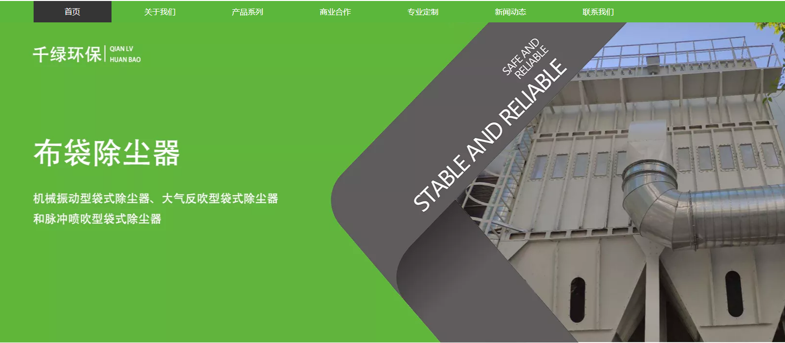 公司主導產(chǎn)品:木工除塵、鋼廠除塵、煙氣除塵、脫硫、脫硝以及車間各類粉塵處理、VOC廢氣凈化(等離子UV光解、催化燃燒、低碳燃燒)、噪聲控制等。佛山千綠環(huán)保工程設(shè)備有限公司具有專業(yè)強大的工藝技術(shù)團隊,匯聚了一批煙塵控制、燃煤脫硫、脫硝技術(shù)等領(lǐng)域具有豐富經(jīng)驗的高、中級技術(shù)人才,具有較強的設(shè)備開發(fā)能力和環(huán)保工程設(shè)計技術(shù)。公司產(chǎn)品具有效果好,功耗低,質(zhì)量穩(wěn)定等優(yōu)勢,產(chǎn)品壽命高于行業(yè)平均標準。