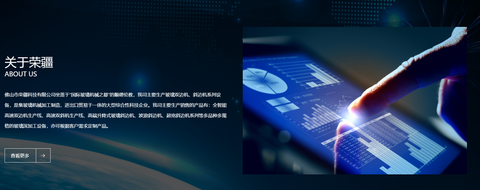 佛山市榮疆科技有限公司坐落于“國(guó)際玻璃機(jī)械之都”的順德倫教,我司主要生產(chǎn)玻璃雙邊機(jī)、斜邊機(jī)系列設(shè)備,是集玻璃機(jī)械加工制造、進(jìn)出口貿(mào)易于一體的大型綜合性科技企業(yè)。我司主要生產(chǎn)銷售的產(chǎn)品有:全智能高速雙邊機(jī)生產(chǎn)線、高速雙斜機(jī)生產(chǎn)線、高端升降式玻璃斜邊機(jī)、波浪斜邊機(jī)、超 寬斜邊機(jī)系列等多品種多規(guī)格的玻璃深加工設(shè)備,亦可根據(jù)客戶需求定制產(chǎn)品。 我司技術(shù)前身是“譽(yù)宏”品牌,歷經(jīng)十五年技術(shù)積累沉淀和市場(chǎng)檢驗(yàn),產(chǎn)品性能穩(wěn)如磐石,并有著豐富的生產(chǎn)管理經(jīng)驗(yàn),有著強(qiáng)大的技術(shù)支持和專業(yè) 的生產(chǎn)工藝。遵循“專業(yè)、經(jīng)典、獨(dú)特”的高標(biāo)準(zhǔn)高要求,使我司產(chǎn)品達(dá)到國(guó)內(nèi)外超一流水準(zhǔn),是真正的斜邊機(jī)專家和領(lǐng)導(dǎo)者?!安粩鄤?chuàng)新,追求更好” 是公司的經(jīng)營(yíng)理念,“想您所想,為您服務(wù)”是我司的發(fā)展宗旨。 我司因卓越的服務(wù)理念深受眾多客戶的認(rèn)可及好評(píng),同時(shí)培養(yǎng)出一批行業(yè)尖端人才,擁有一支領(lǐng)先其他企業(yè)的專業(yè)服務(wù)團(tuán)隊(duì)。