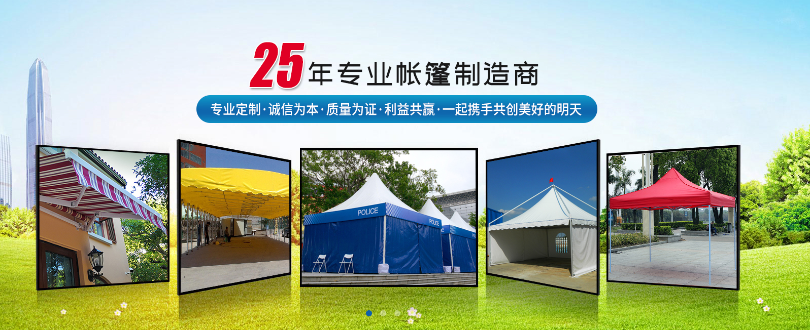 經(jīng)過十多年的開拓和發(fā)展,本公司產(chǎn)品遍布海內(nèi)外,得到了行業(yè)的高度認可。我們的主要產(chǎn)品有手動推拉篷、手動軌道推拉篷、遙控電動推拉篷、遙控電動軌道篷,尖頂篷、篷房、單邊傘、羅馬傘、木傘、救災帳篷、廣告帳篷、等一系列戶外遮陽用品。