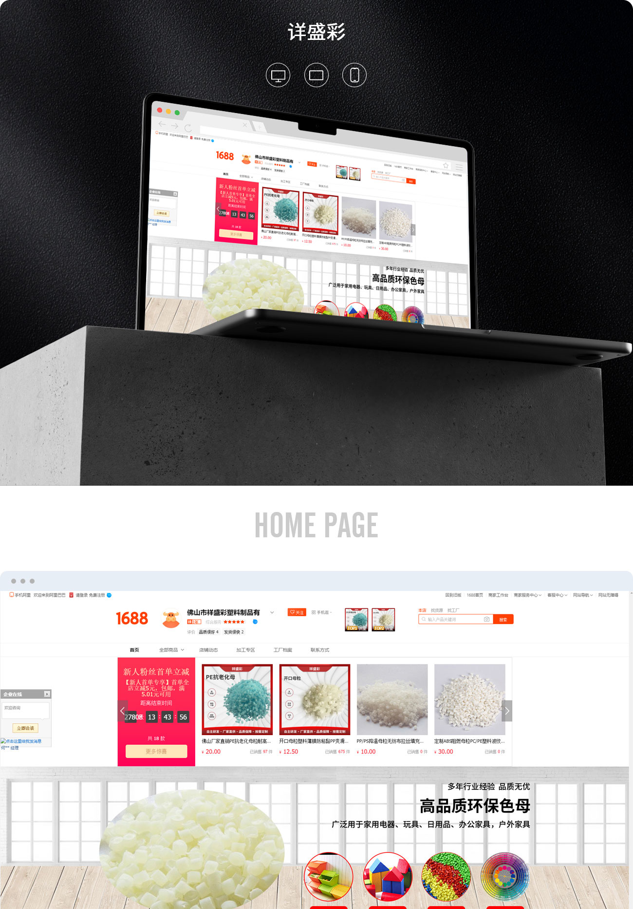 店鋪設(shè)計采用扁平風(fēng)進行設(shè)計,畫面干凈,具有詳盛彩產(chǎn)品自身特色,整體網(wǎng)站的色彩以紅色和奶灰色進行搭配,突出產(chǎn)品質(zhì)感,加深用戶對產(chǎn)品的印象。