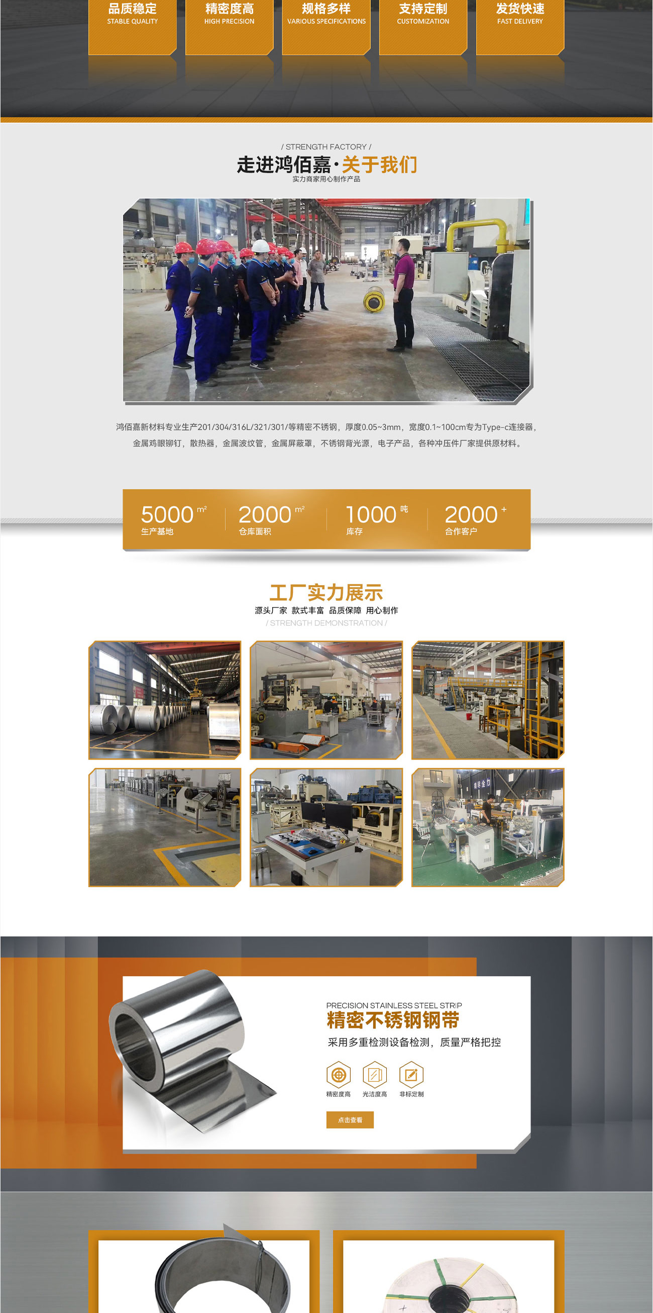 鴻佰嘉新材料專業(yè)生產(chǎn)201/304/316L/321/301/等精密不銹鋼,厚度0.05~3mm,寬度0.1~100cm專為Type-c連接器,金屬雞眼鉚釘,散熱器,金屬波紋管,金屬屏蔽罩,不銹鋼背光源,電子產(chǎn)品,各種沖壓件廠家提供原材料。